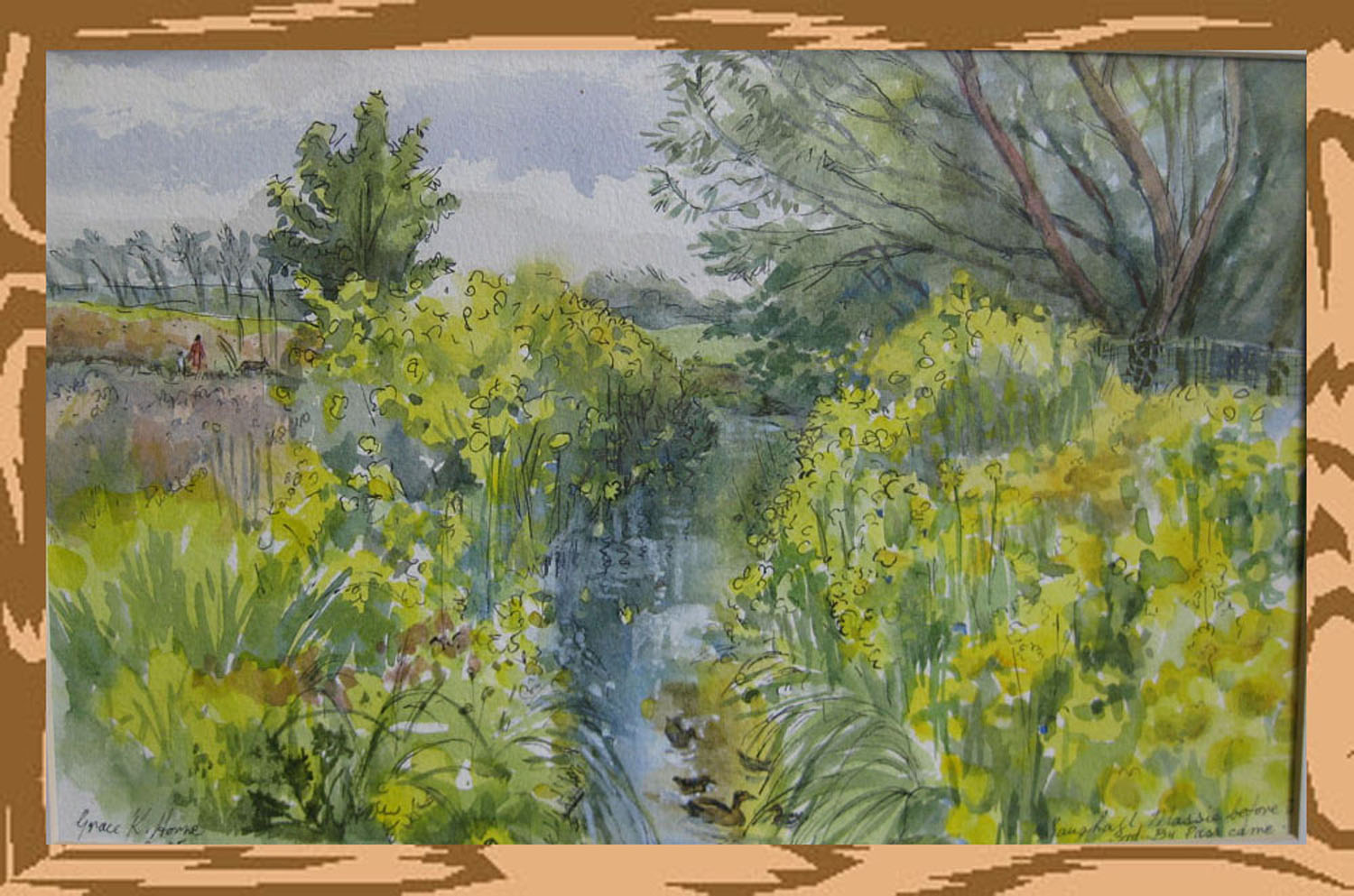 Along the way, it passes through a variety of landscapes, from the rather bitty, urban fringe land at Pensby, alongside a housing estate, to the low lying North Wirral Plain. At Irby, it passes through the wooded valley of Harrock Wood, an attractive mixed woodland owned by the National Trust. Then, it runs alongside housing at Limbo Lane Plantation, across to and through Arrowe Park and on to skirt the side of Upton Meadow beyond. North of Greasby Road, it runs alongside more housing before briefly entering open fields at Saughall Massie. The Arrowe Brook then turns abruptly through and alongside more urban development on its way to the Birket.